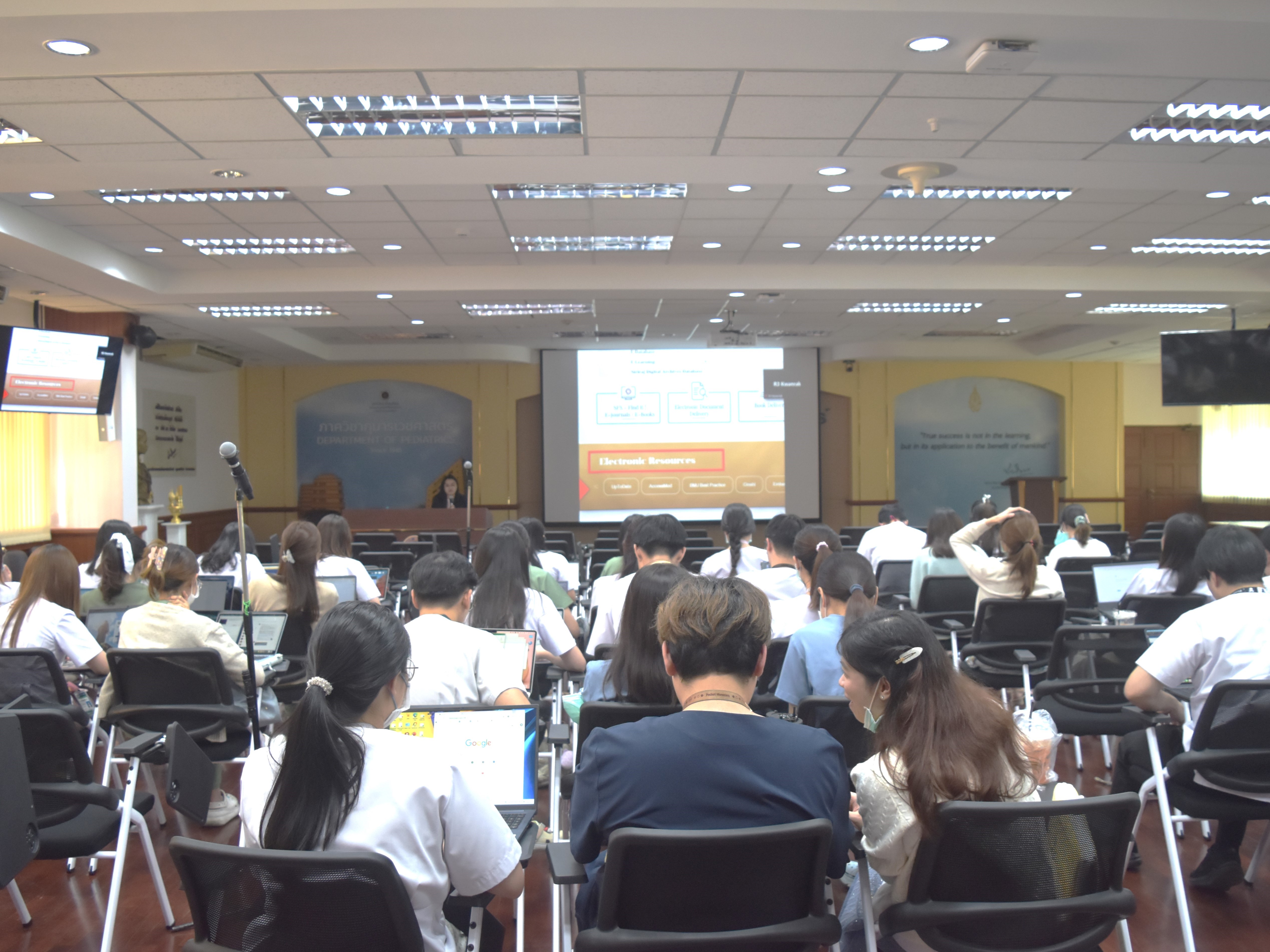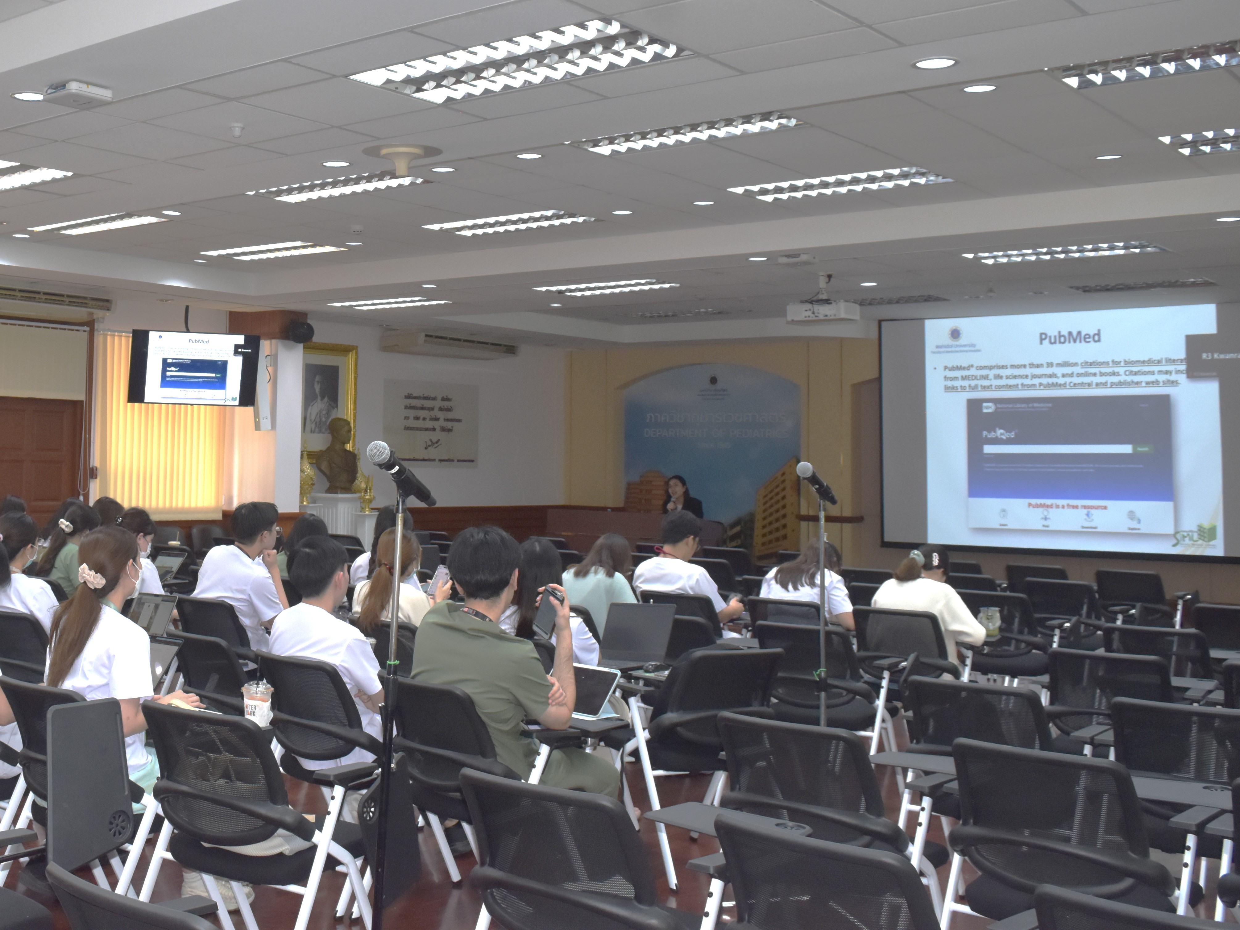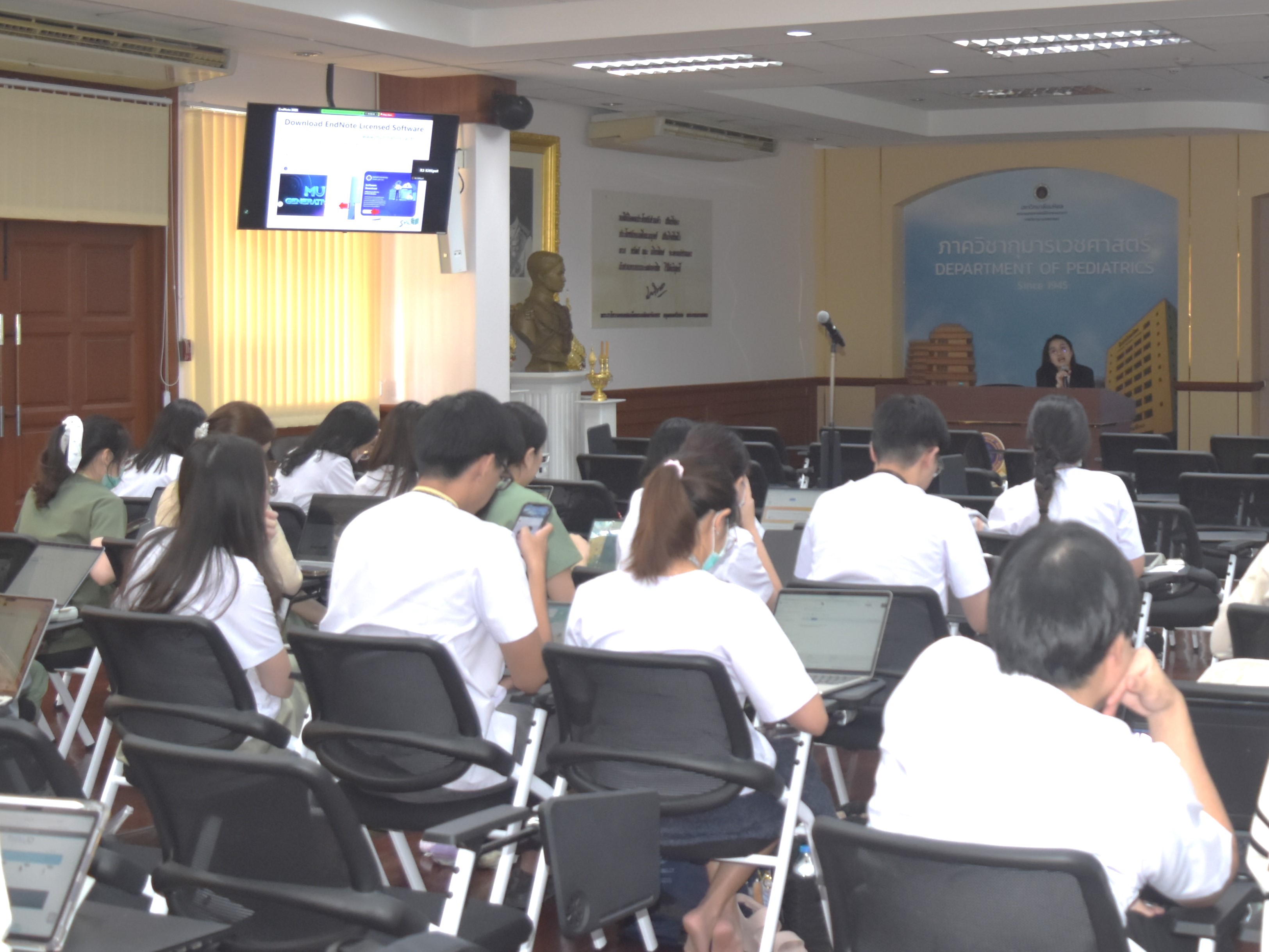 งานหอสมุดศิริราช เข้าร่วมในกิจกรรมของฝ่ายวิจัย ภาควิชากุมารเวชศาสตร์ คณะแพทยศาสตร์ศิริราชพยาบาล บรรยายหัวข้อ "Literature Search" และอบรมการใช้งานโปรแกรม "EndNote 2025" โดย นางสาวบงกช ประกิตติกุล หัวหน้างานหอสมุดศิริราช ให้กับแพทย์ประจำบ้านชั้นปีที่ 1 และปีที่3 ภาควิชากุมารเวชศาสตร์ ในวันพุธที่ 8 ตุลาคม พ.ศ. 2568 เวลา 13.00-15.00 น.ณ ห้องประชุมประสงค์ ตู้จินดา ตึกอานันทมหิดล ชั้น 10 ภาพถ่ายโดย นายชยพัทธ์ จีรพัฒน์กุล